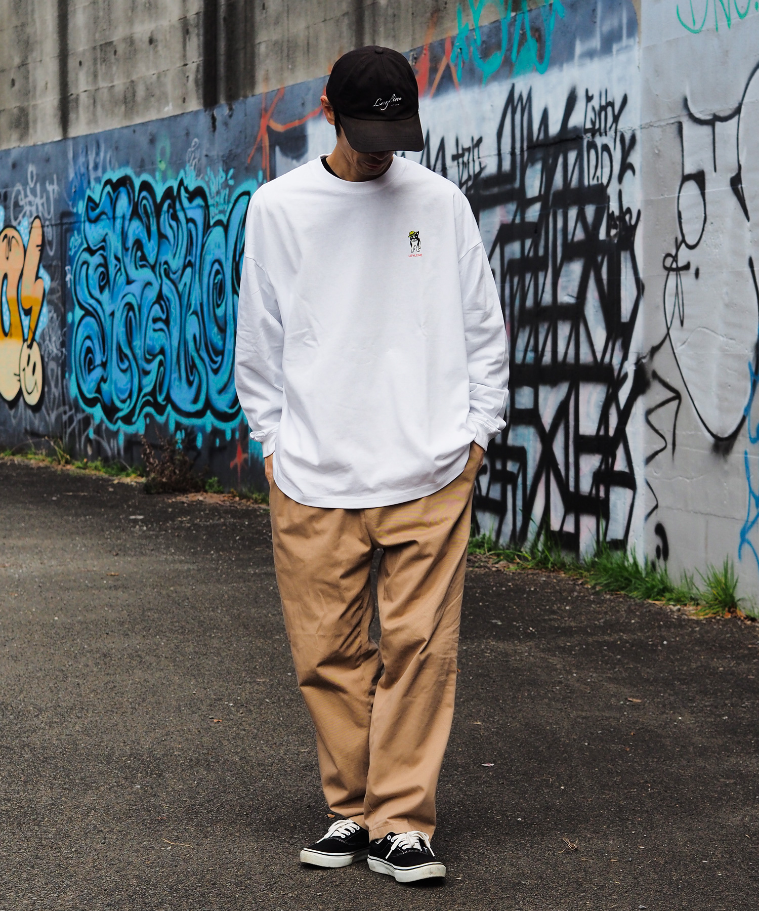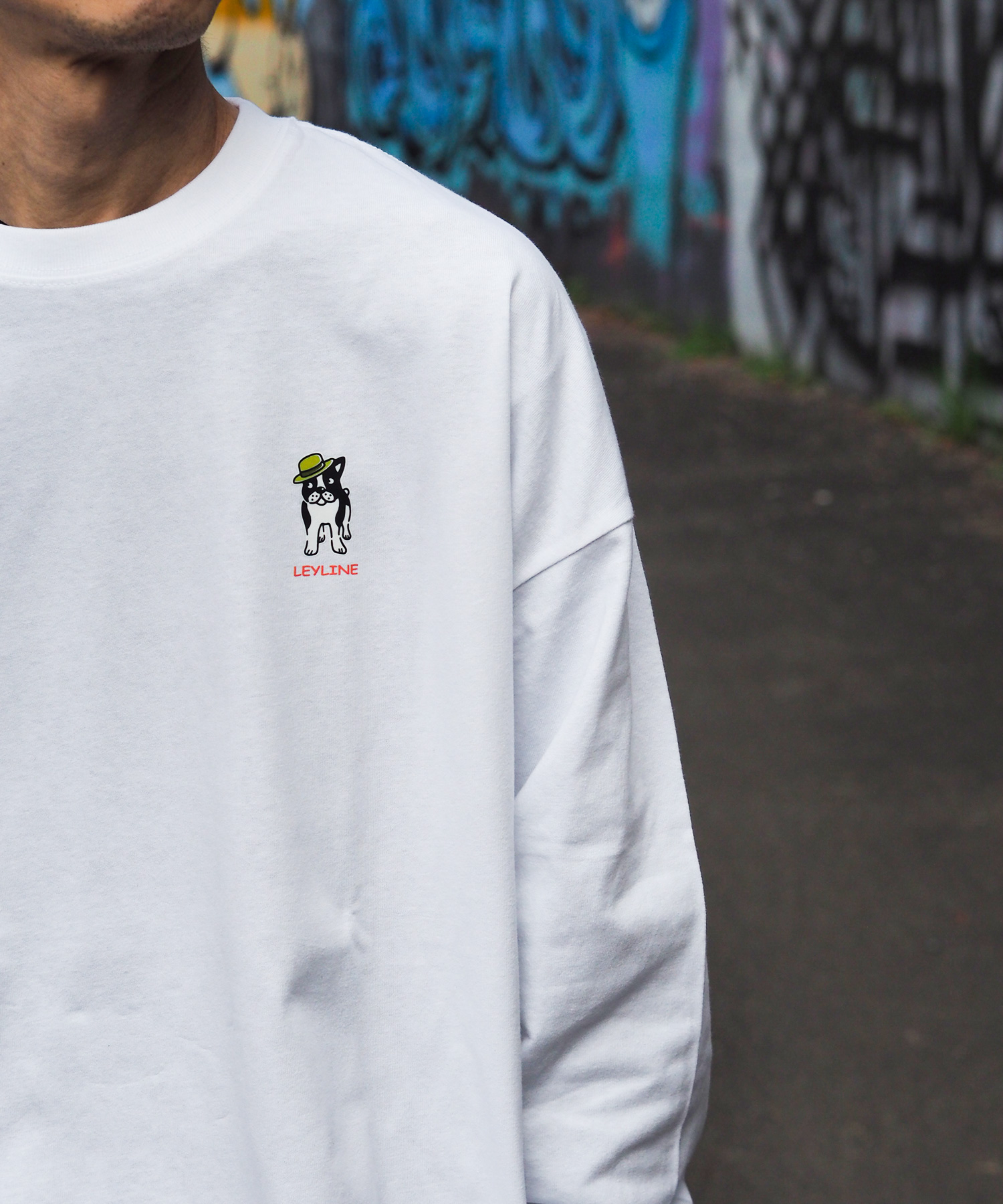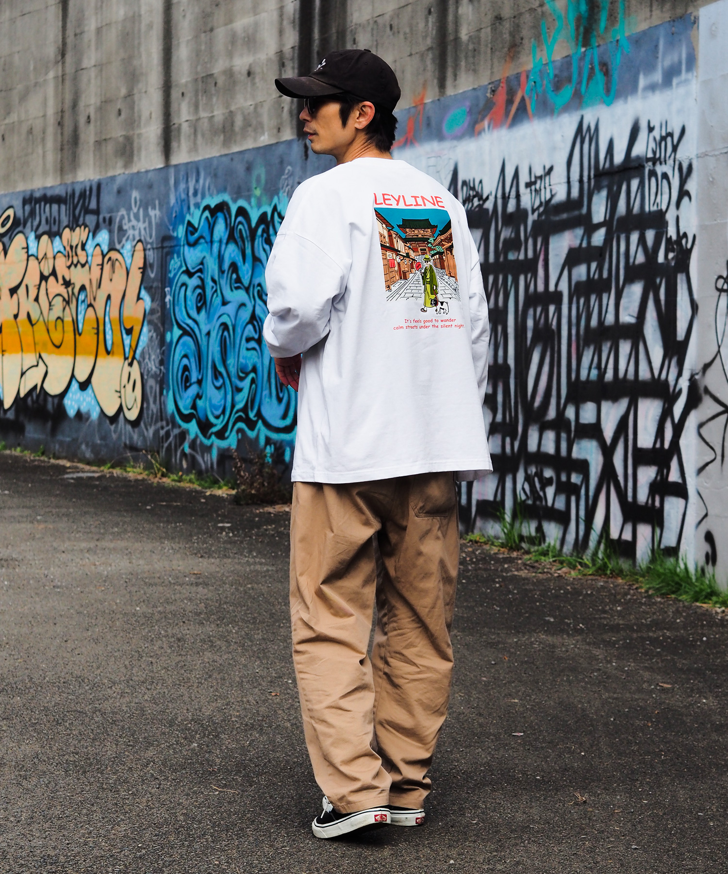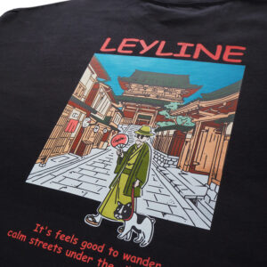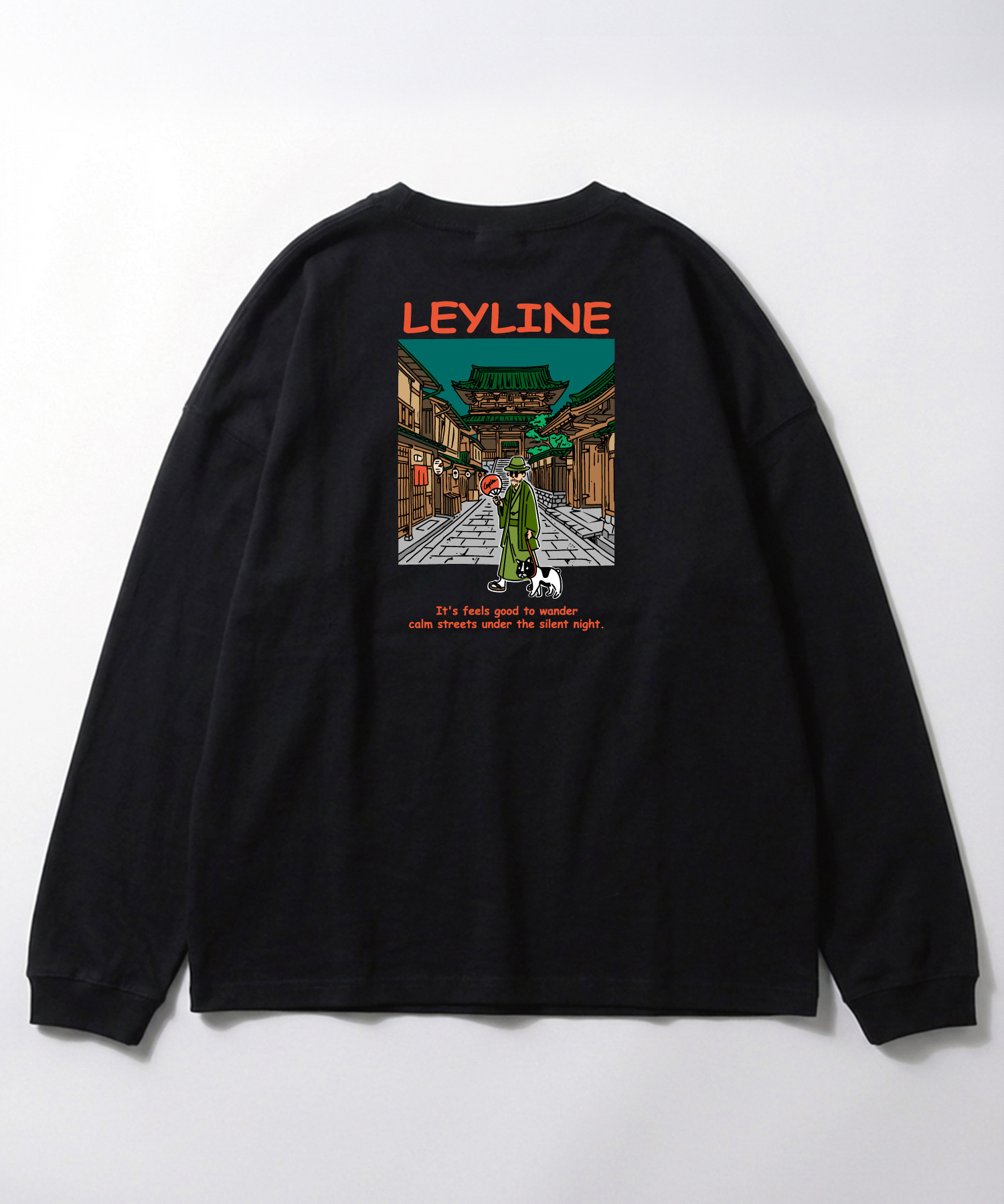 LeylineオリジナルキャラクタースミスのビックシルエットロンT。 京都の夜の街を散歩してる可愛いらしいデザインになっています。