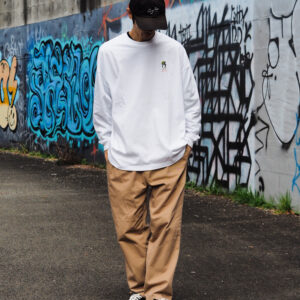 5,6オンスの生地に、ビックシルエットのロンTでゆったりとラフに着ていただけます。