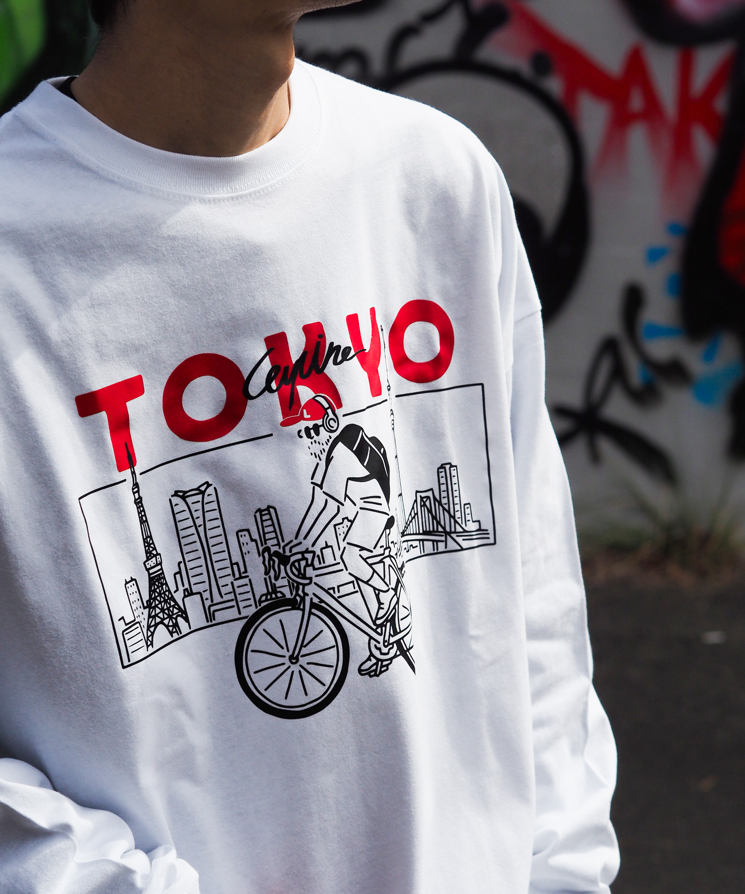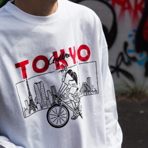 東京をサイクリングしてる可愛いらしいデザインになっています。